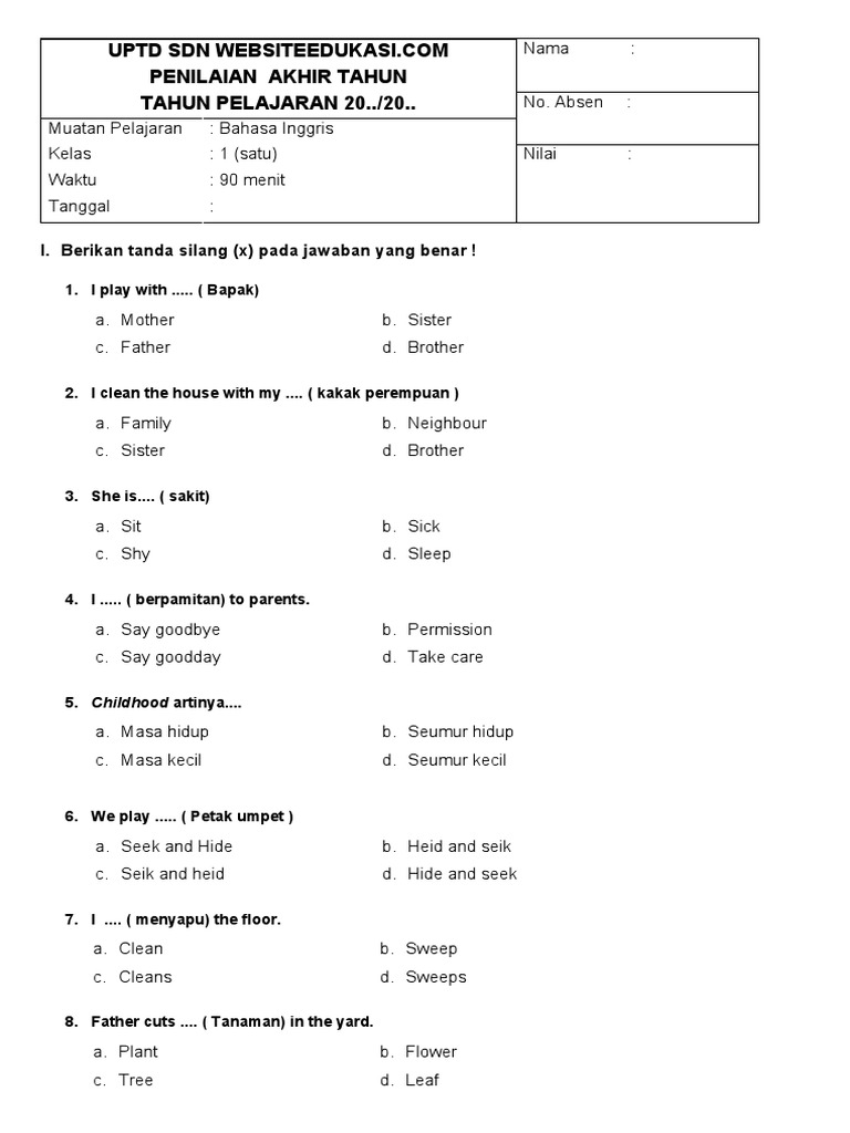 - Referensi Materi yang Konsisten: Kurikulum inti untuk materi Bahasa Inggris dasar di kelas 1 cenderung tidak berubah drastis dalam beberapa tahun. Soal-soal dari tahun 2018-2019 kemungkinan besar masih mencakup topik-topik fundamental yang relevan dengan standar pembelajaran saat ini.